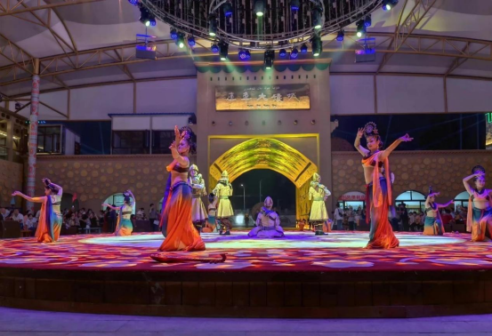 The focus of the renovation and upgrade of the Kuche Nang City is to decorate the interior of the scenic spot and design the stage lighting and sound system, upgrade the original one-story nang production workshop to two floors, expand the nang culture exhibition hall, and add parent-child experience roasted naan district, according to the characteristics of Kuche, the old tea-house in Kuche was built. In addition, night laser light show, Da Nang city food leisure area, center stage and food area stage are added, various food, singing and dancing performances are launched at night.